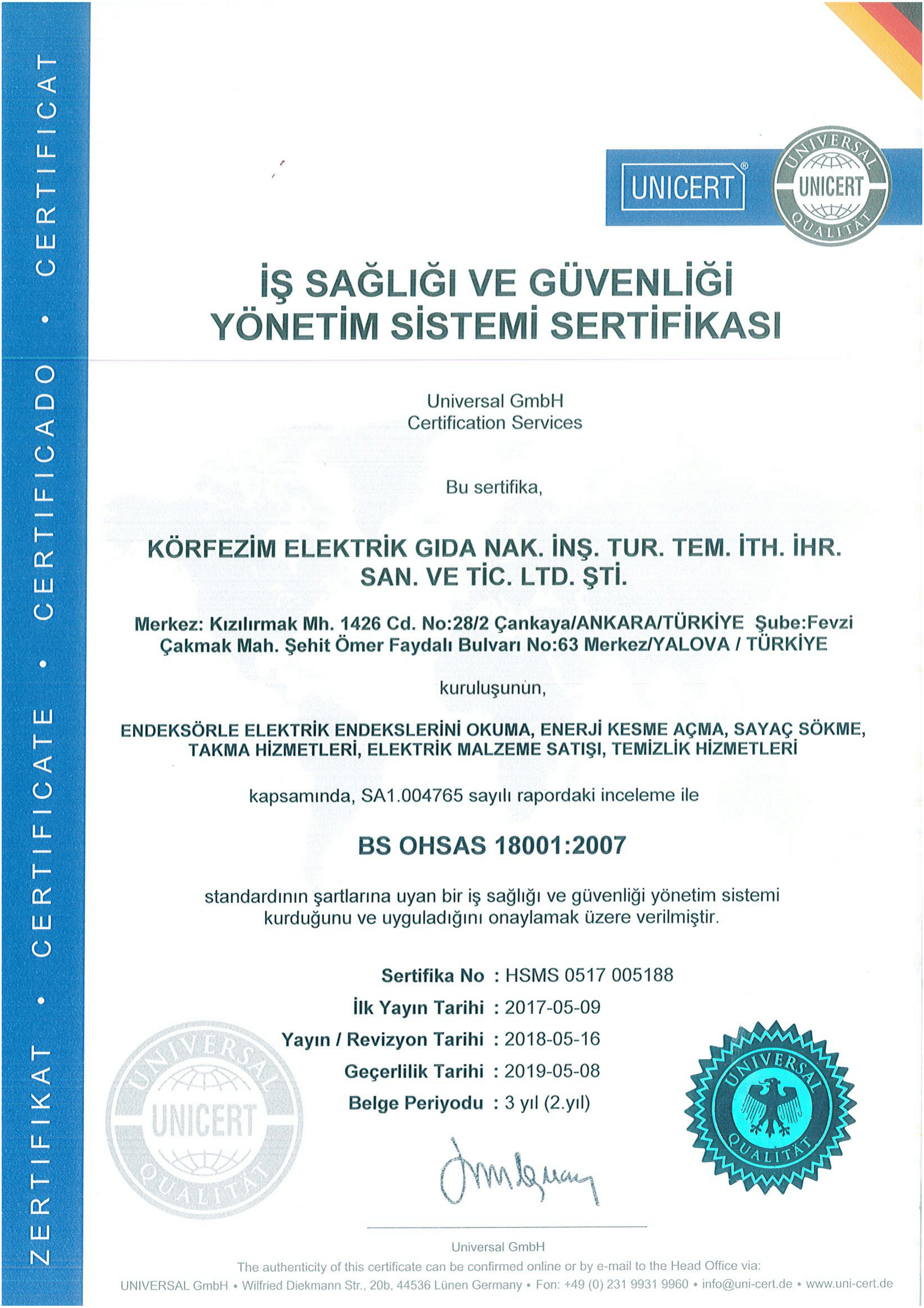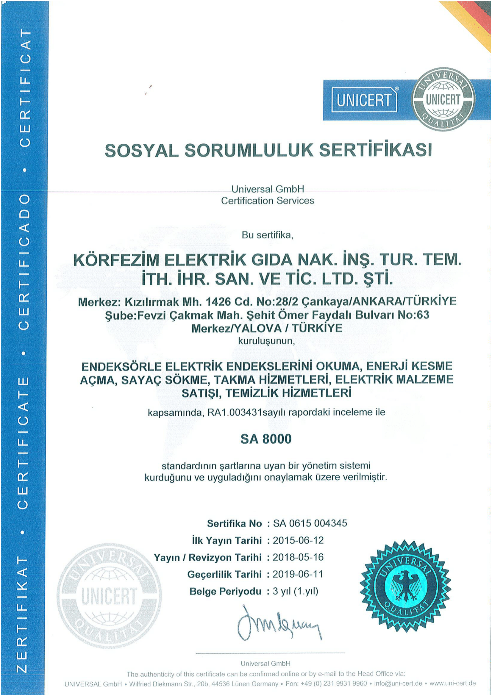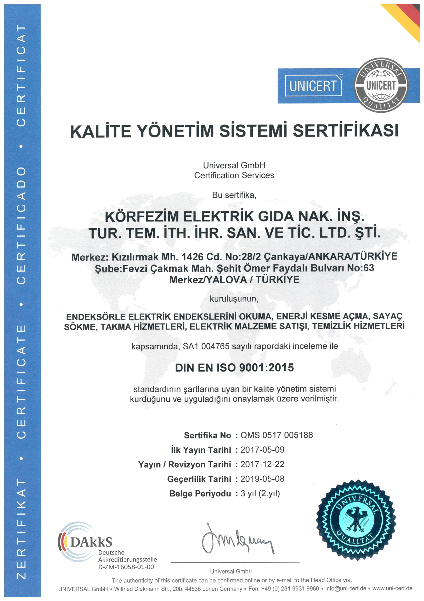 Hizmet sektöründe kalitenin önemini savunan şirketimiz sağlam temellere sahip yüksek rekabet gücüne erişebilmesi için Ulusal Kalite Hareketi'ne 2012 yılında katılmış olup kalitesinin sürekli zenginleştirilmesi yükseltilmesi ve yenilenmesini amaçlamıştır.